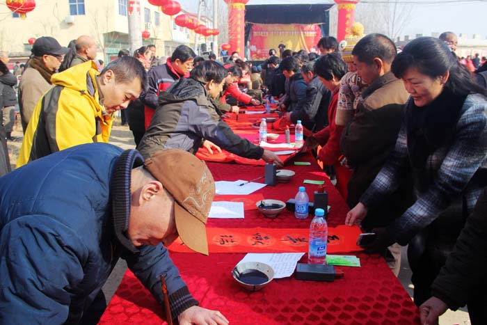 昔日古戰(zhàn)場(chǎng),今朝更吉祥。2015年2月6日上午,由省委宣傳部和省文聯(lián)、省政府金融辦主辦,鄭州市委宣傳部、河南省文藝家志愿者協(xié)會(huì)、河南省省直書(shū)畫(huà)家協(xié)會(huì)協(xié)辦的全省“踐行價(jià)值觀 新年送春聯(lián)”活動(dòng)啟動(dòng)儀式,在中牟縣官渡鎮(zhèn)官渡橋村舉行。省委宣傳部常務(wù)副副長(zhǎng)王耀同志在啟動(dòng)儀式上講話,副部長(zhǎng)王慶同志主持了儀式。省金融辦副主任李栓成、鄭州市委常委、宣傳部長(zhǎng)王哲等也參加了活動(dòng)儀式。