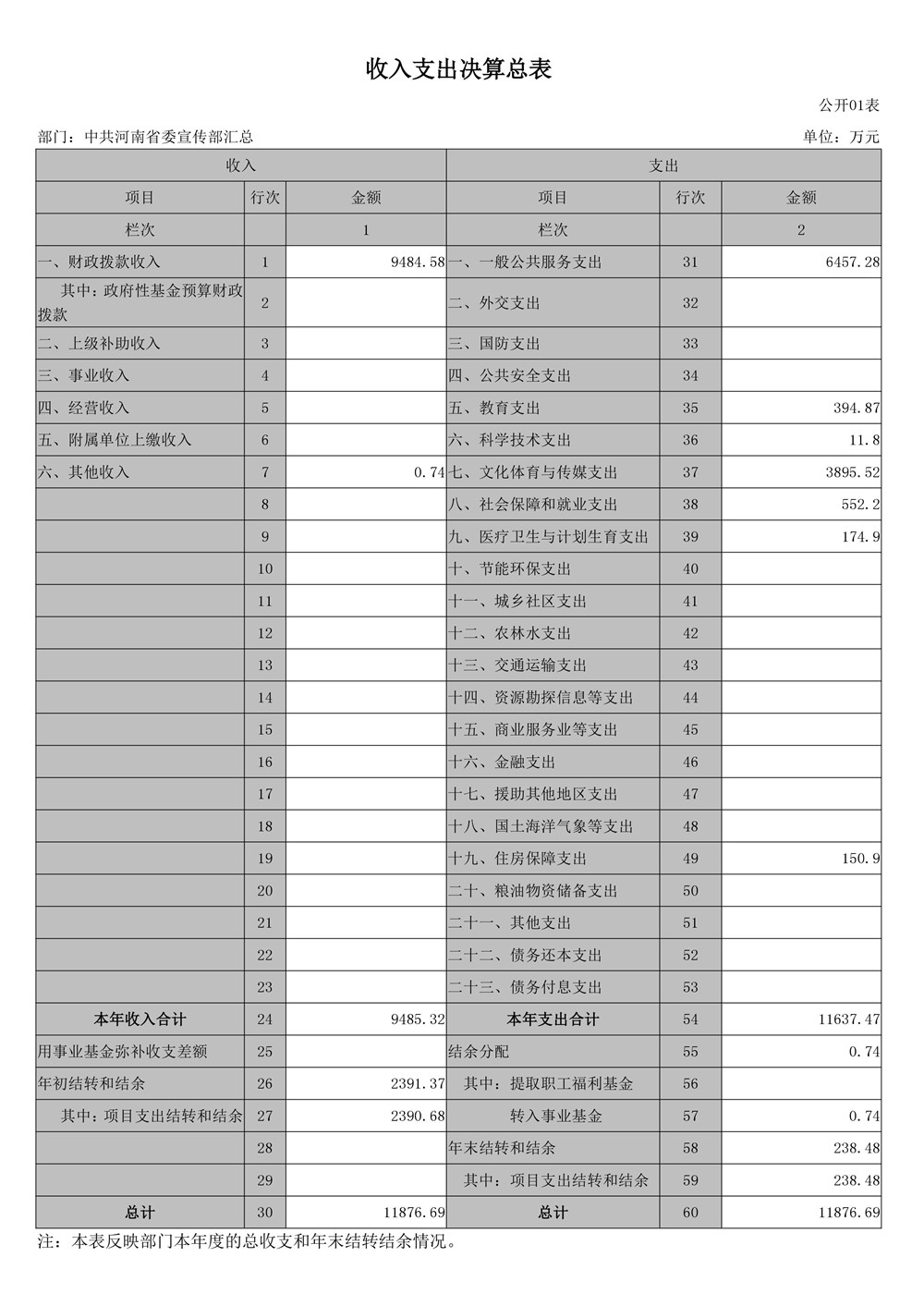 2016年度河南省委宣傳部部門決算公開